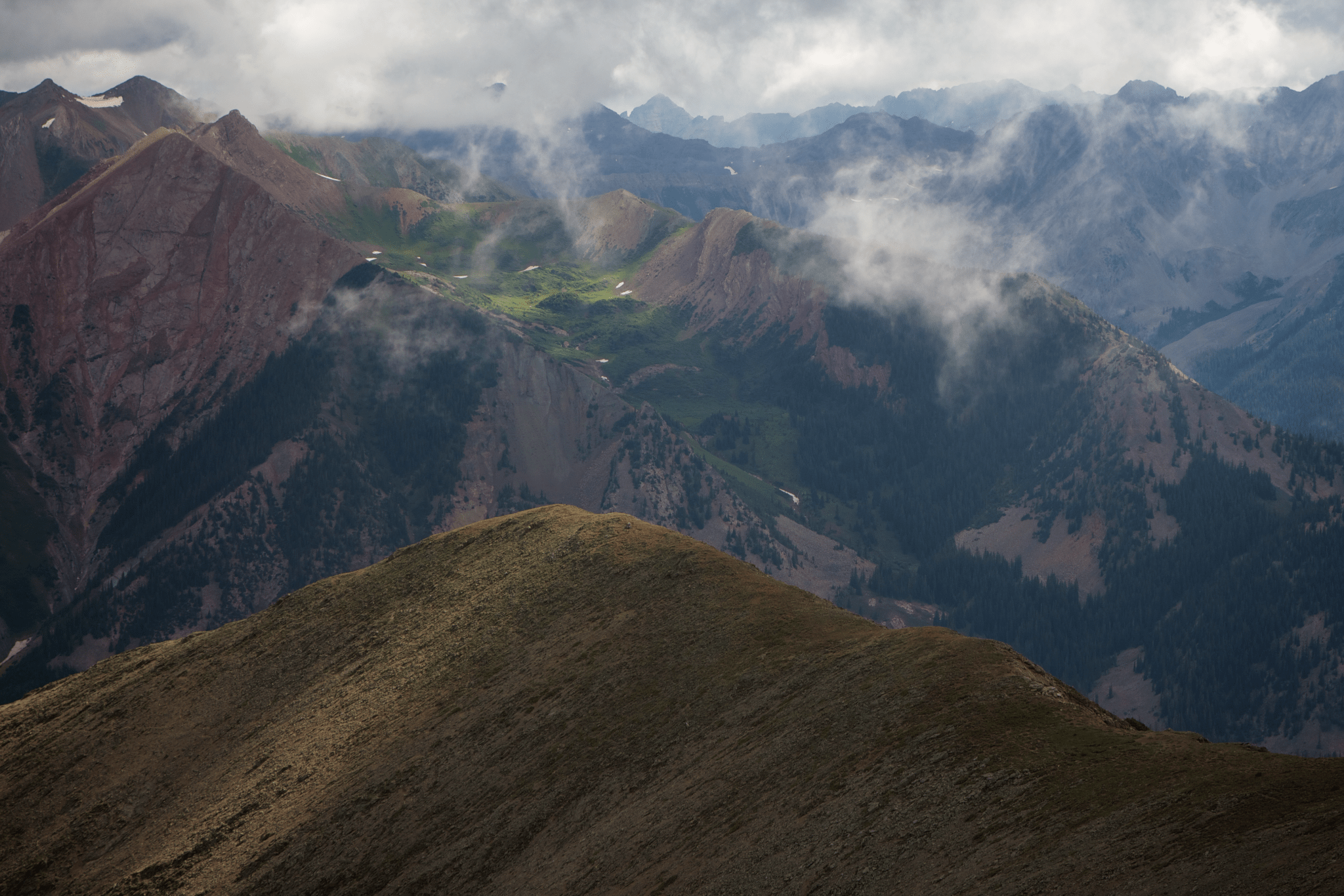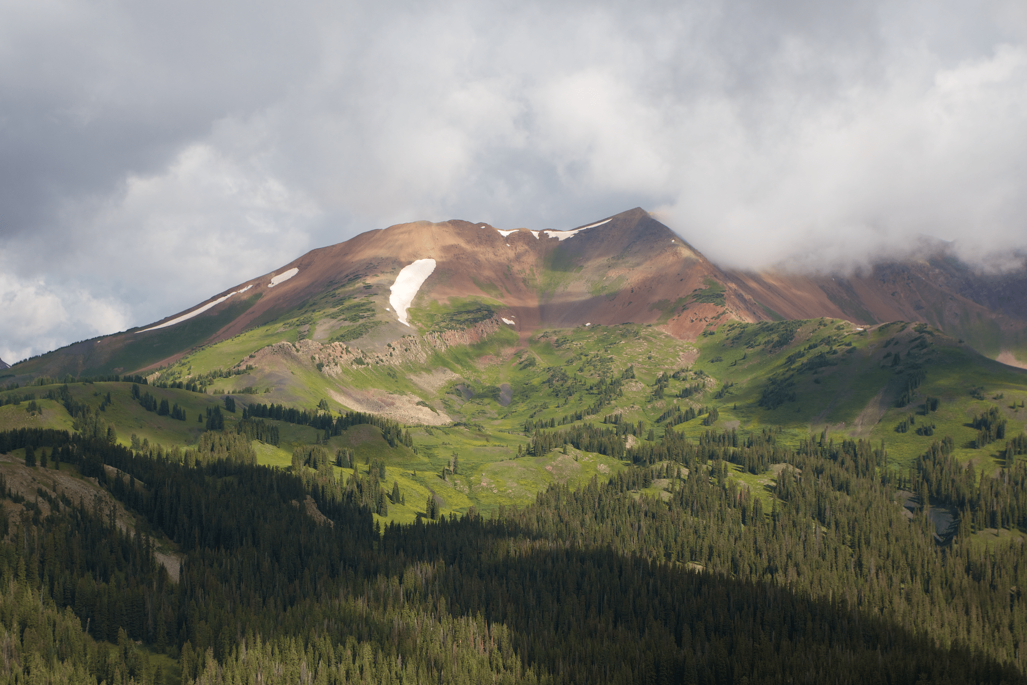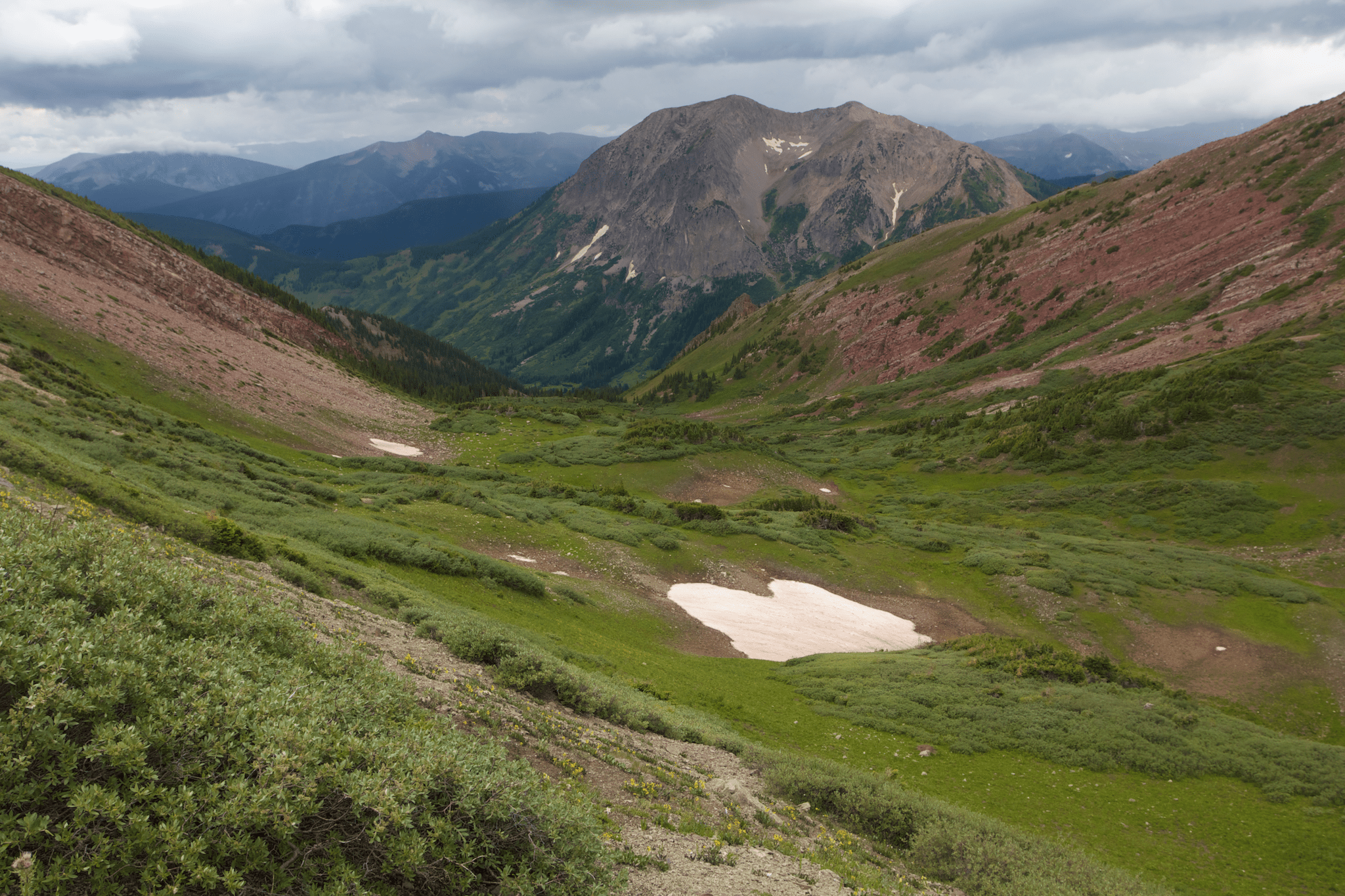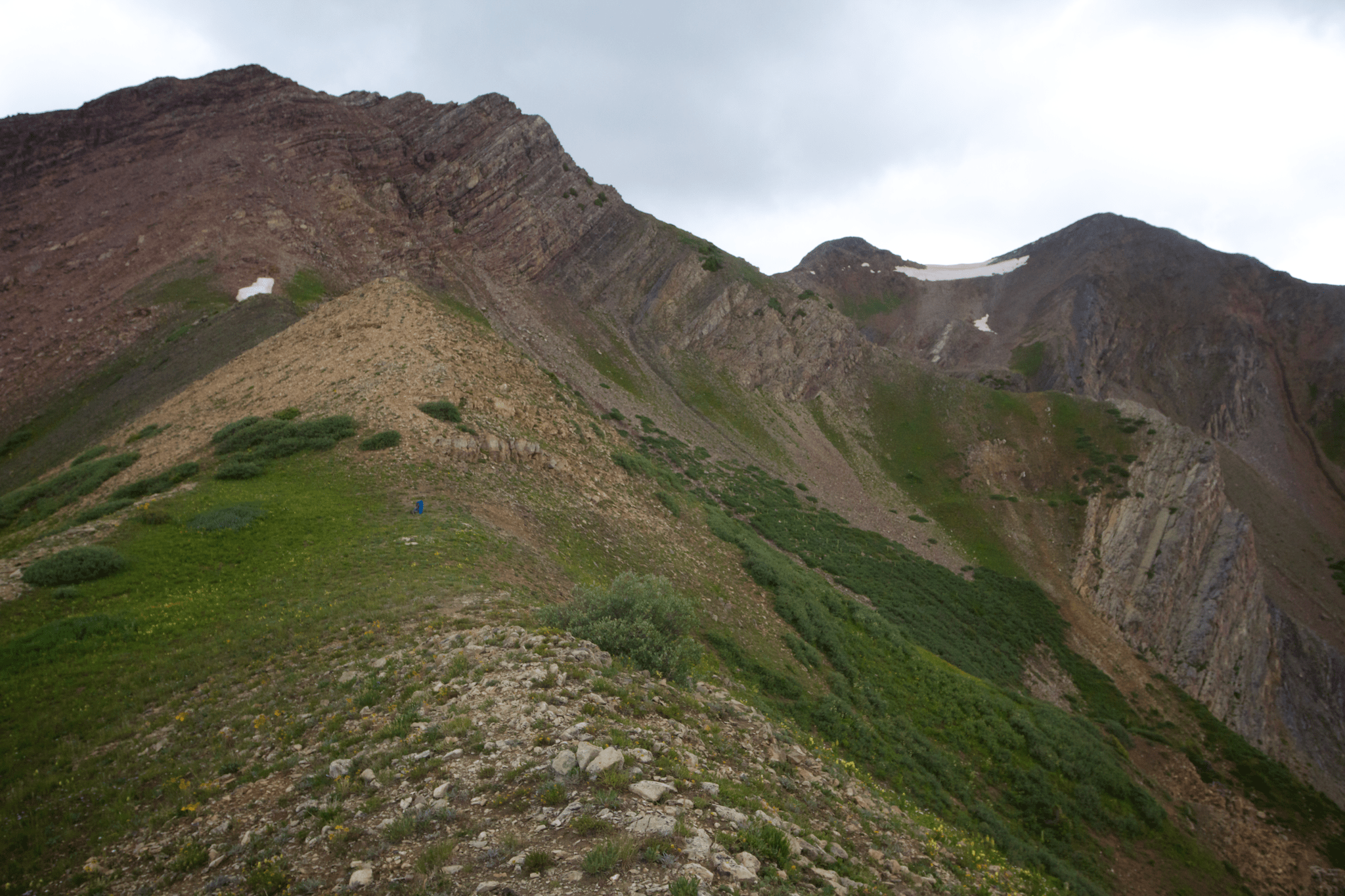 My final option was Mount Baldy, elevation approximately 12800′. I dropped down a ridgeline from Gothic and checked it out.