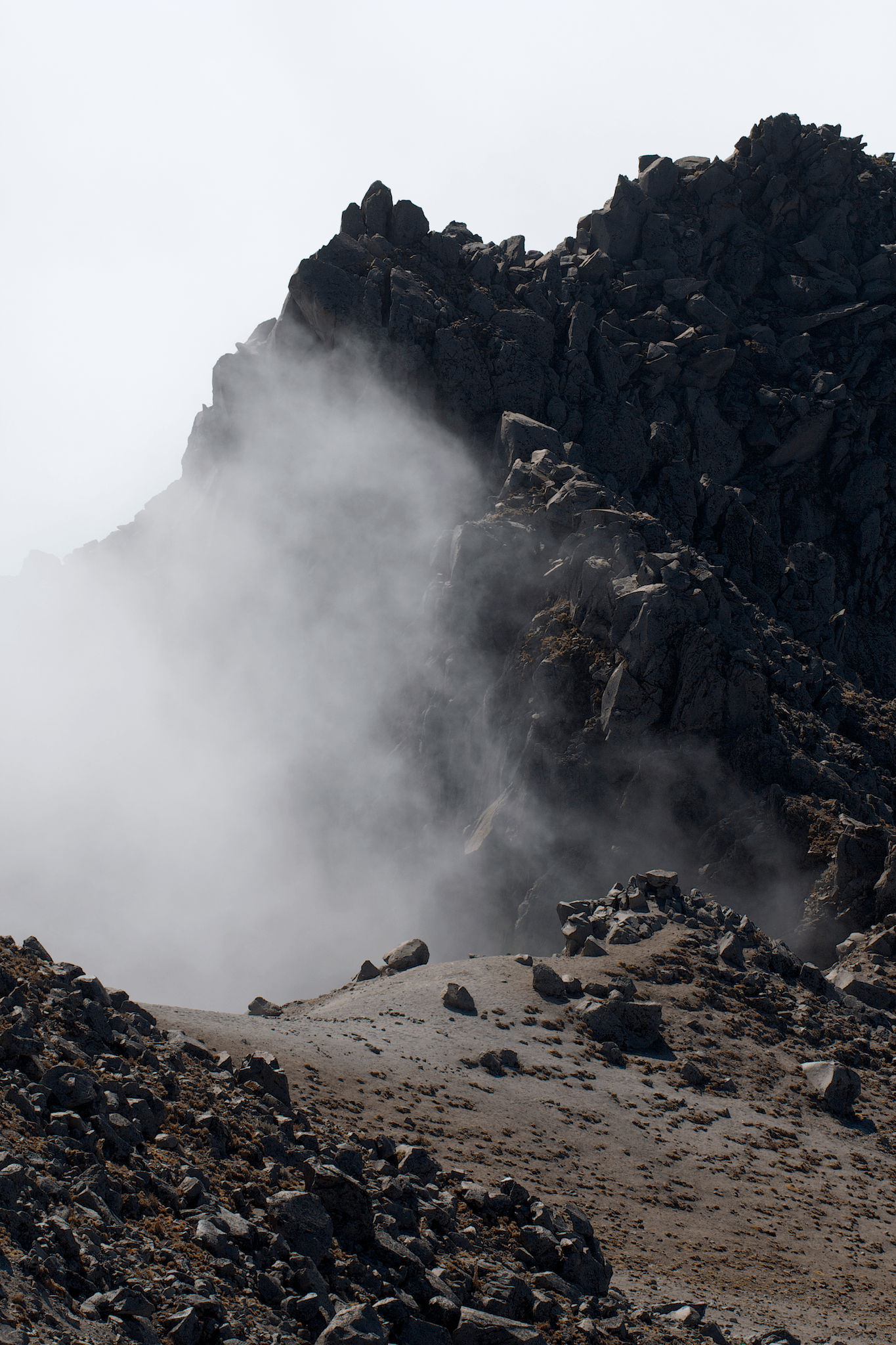 Higher up yet, no plants remained at all. We found nothing more than a barren landscape of ash, rock, and lichen.