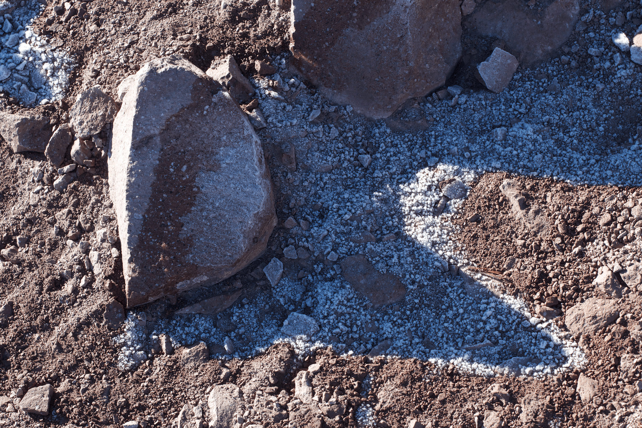 Ice was common here, probably due to condensation from the clouds formed by orographic lift. Shadows trapped the ice where the sun did not reach.