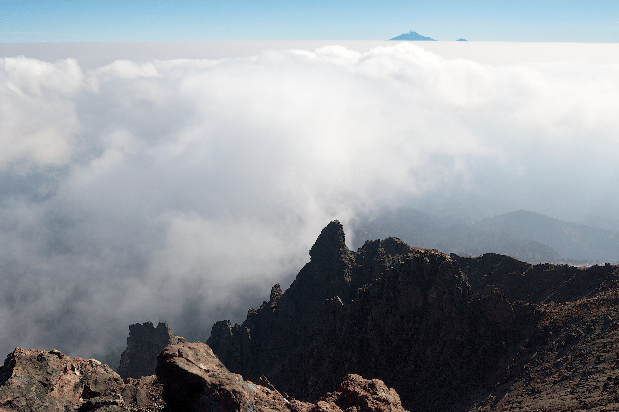 At the top, we found ourselves high above the clouds on a beautiful clear morning. In places like this, the concept of a sky island is most evident. We talk about mountains as islands, in the sense that they trap species on their ridges that cannot pass through the valleys below. Here you can see the summit of La Malinche, with its collapsed caldera in the foreground, and the stratovolcano Pico de Orizaba (5636 m) some eighty kilometers away. As you can imagine, the animals and plants and microbes living on each peak show strong genetic differentiation because of their geographic isolation.