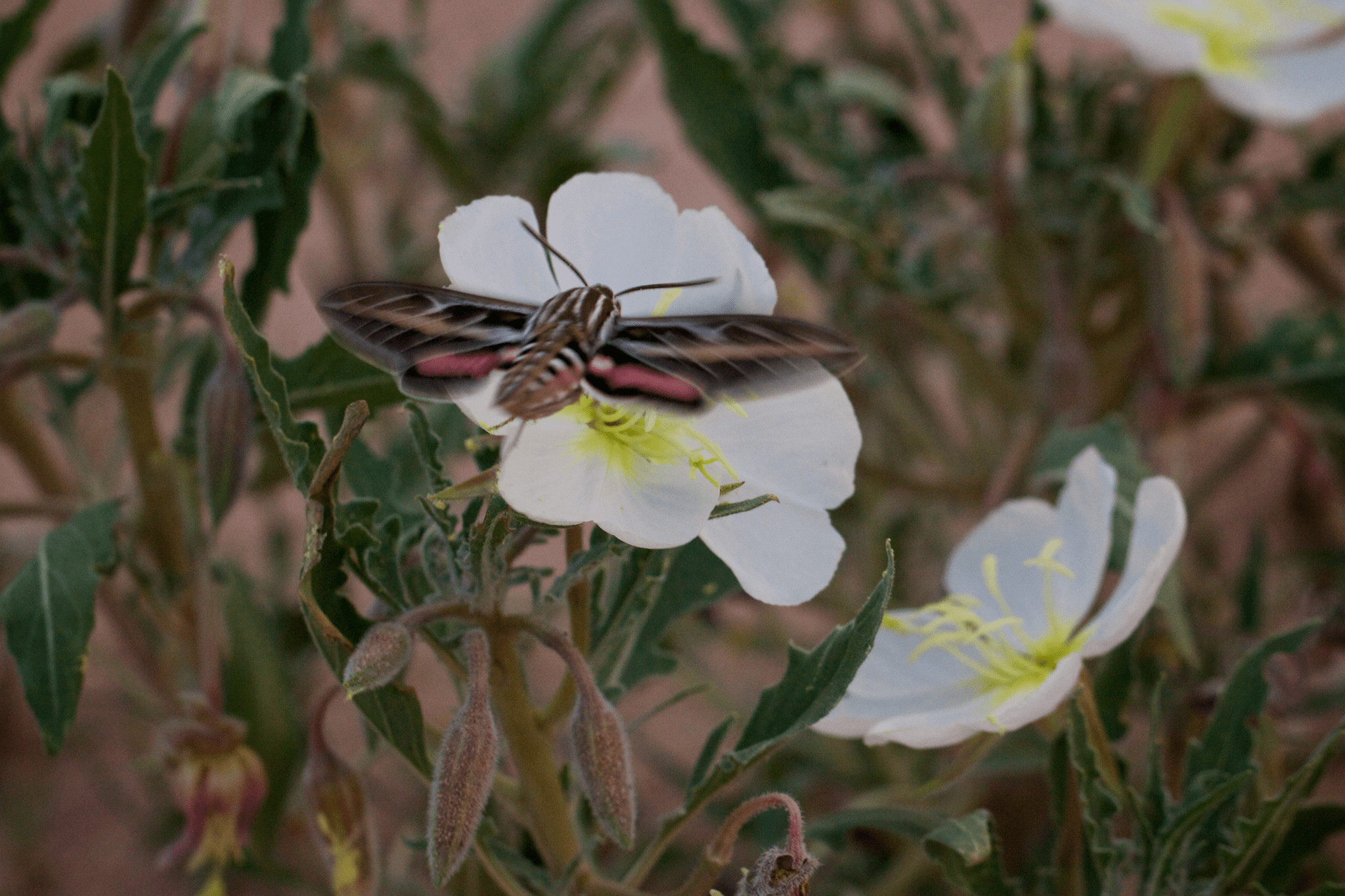 This species is visited by crepuscular hawkmoths (here probably Hyles lineata). At dusk the sky darkens with these hummingbird-size insects, and a soft flapping sound fills in the air. It is utterly magical, and one feels like an intruder into a hidden ecological dance.