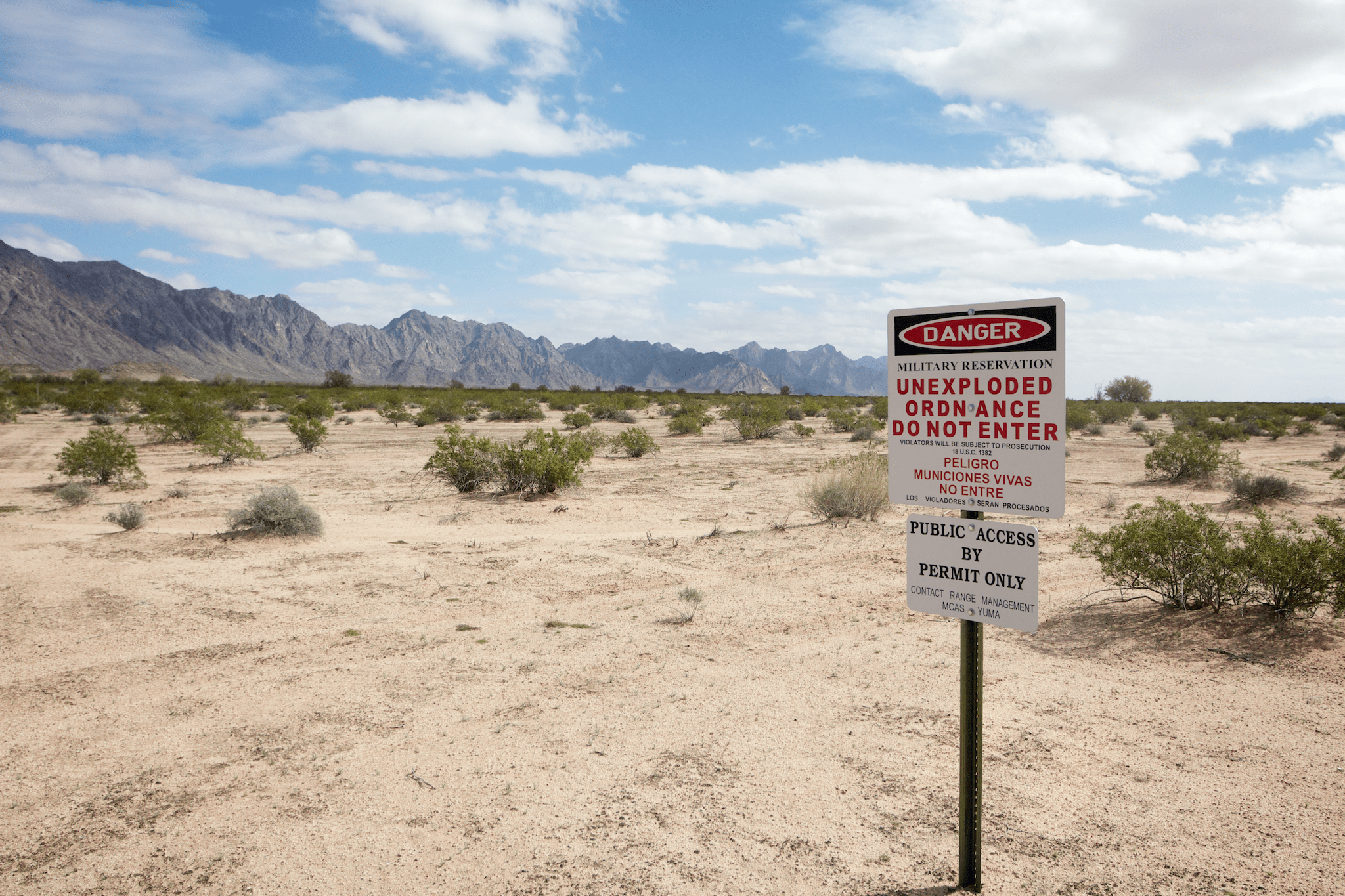 Locating a research site inside a bombing range might seem crazy, but it is what my friend Max is doing for his doctoral research. He works in a portion of the Barry M. Goldwater Range in western Arizona managed by the Marine Corps Air Station Yuma. The area is relatively pristine and well managed because of the military presence, and active bombing hasn’t been carried out nearby for years. Plus, the ‘unexploded ordnance’ signs help to deter the Border Patrol officers from driving all over his research sites. I recently had the chance to visit this place as neither scientist nor soldier, but rather as a botanical tourist.