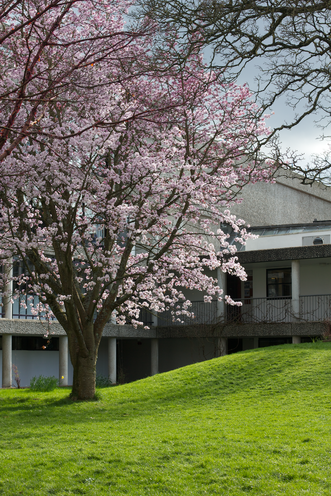 Second, a Japanese cherry (Prunus serrulata) in full spring bloom. The species is commonly planted, and in spring they cover the ground with a carpet of soft petals. On my first trip to a tropical rain forest I was very impressed by the wide number of species that bloomed before putting out leaves – it took a long time before I remembered that many temperature species like cherries take the same strategy. In the days since I took this photo, the flowers are gone, and bright green leaves have already flushed and begun to expand.