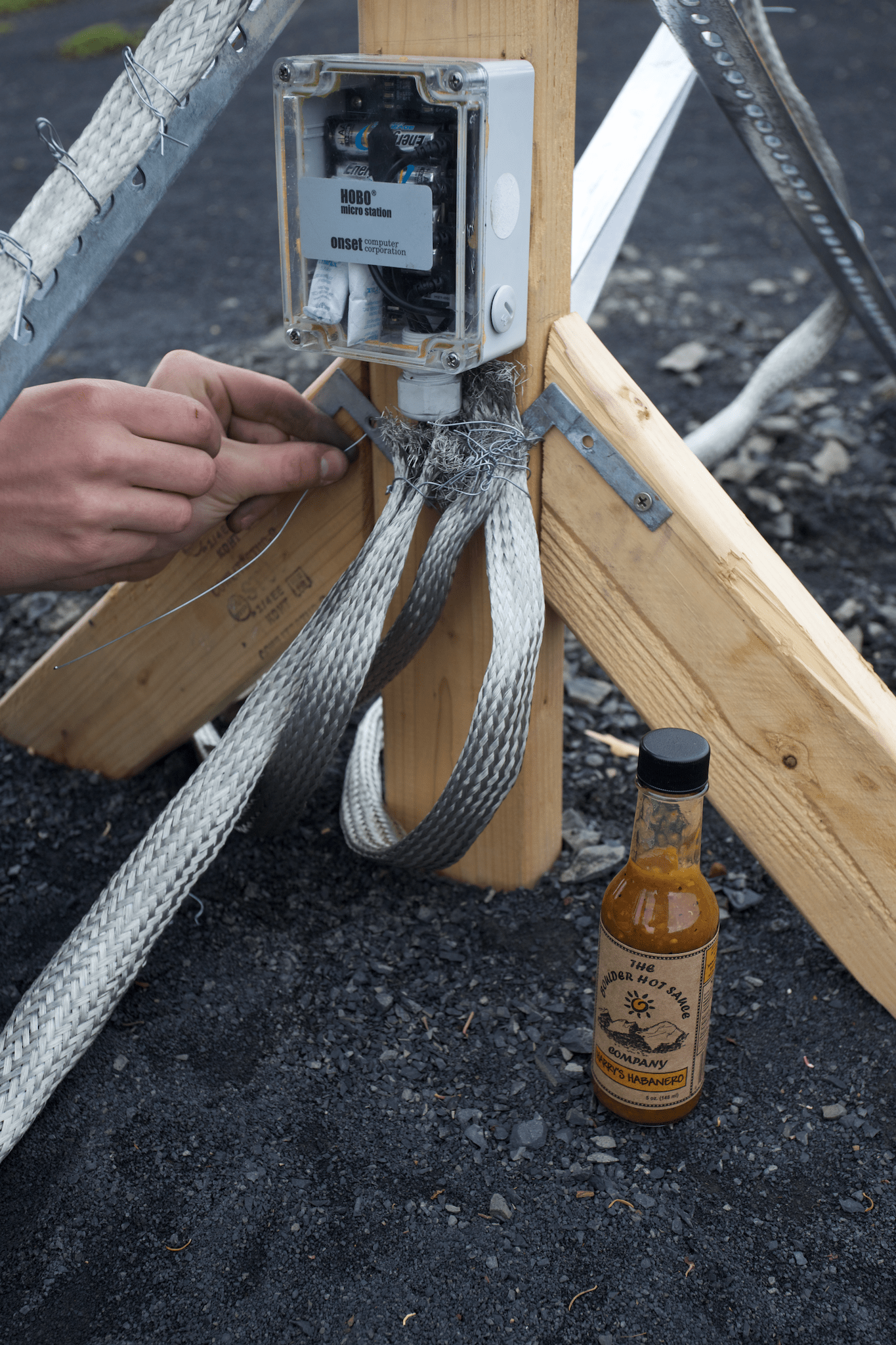 Then, back up the mountain with the weather station, the sheathing, the computer, and an assortment of tools in a backpack, plus one secret weapon.