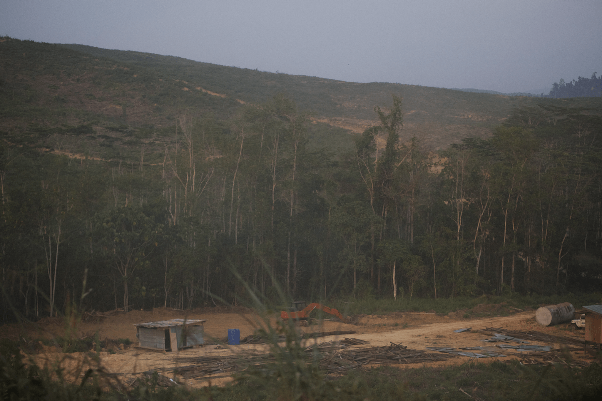 But the landscapes of Malaysian Borneo are not all like this one. Some of the country looks hardly like a forest at all. The trees are all gone. Their immense trunks are too attractive and easy a target for logging. Paper, plywood, and the export market for hardwoods supply the demand.