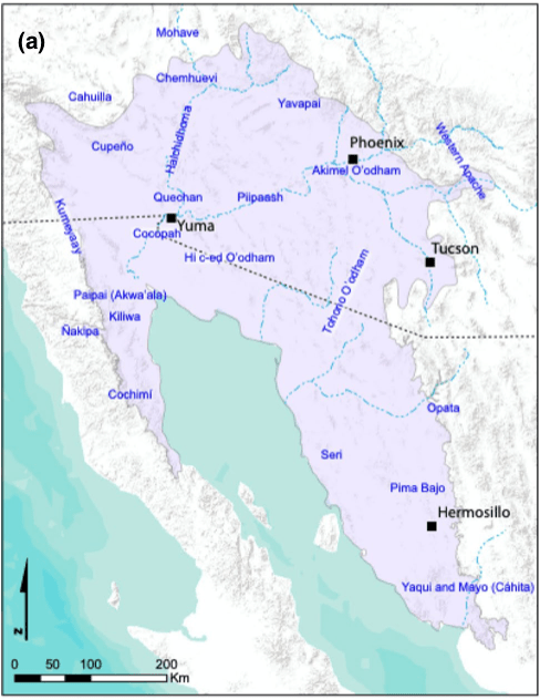 We just published our open access study in Global Ecology and Biogeography on how human food use can potentially influence plant geographical ranges in the Sonoran Desert. The use of plants for food is one of the most important ways in which humans can increase distributions, via propagation, wild harvesting and dispersal. Human populations have potentially reorganized plant distributions at regional and continental scales via food use, which can be seen across the world from Amazonia and Southeast Asia to eastern North America. The Sonoran Desert is also a resource-rich environment with a long history of human occupation by both foraging and agricultural populations (e.g. the Hohokam archaeological culture c. 400-1450 CE). However, we still lack an understanding of human impacts on geographical distribution of the vast majority of food plants that are no longer a major component of human diets within the Sonoran Desert.